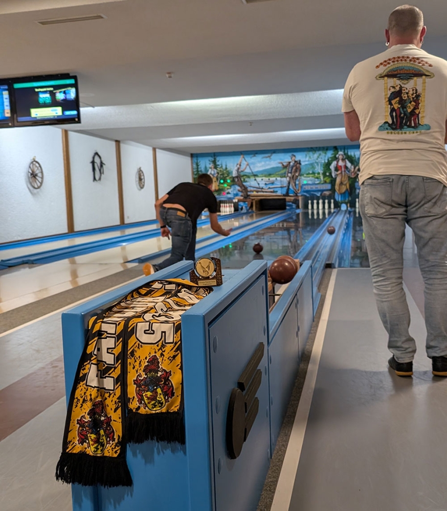 Gut gestärkt ging es zurück an die beiden Kegelbahnen im Keller.