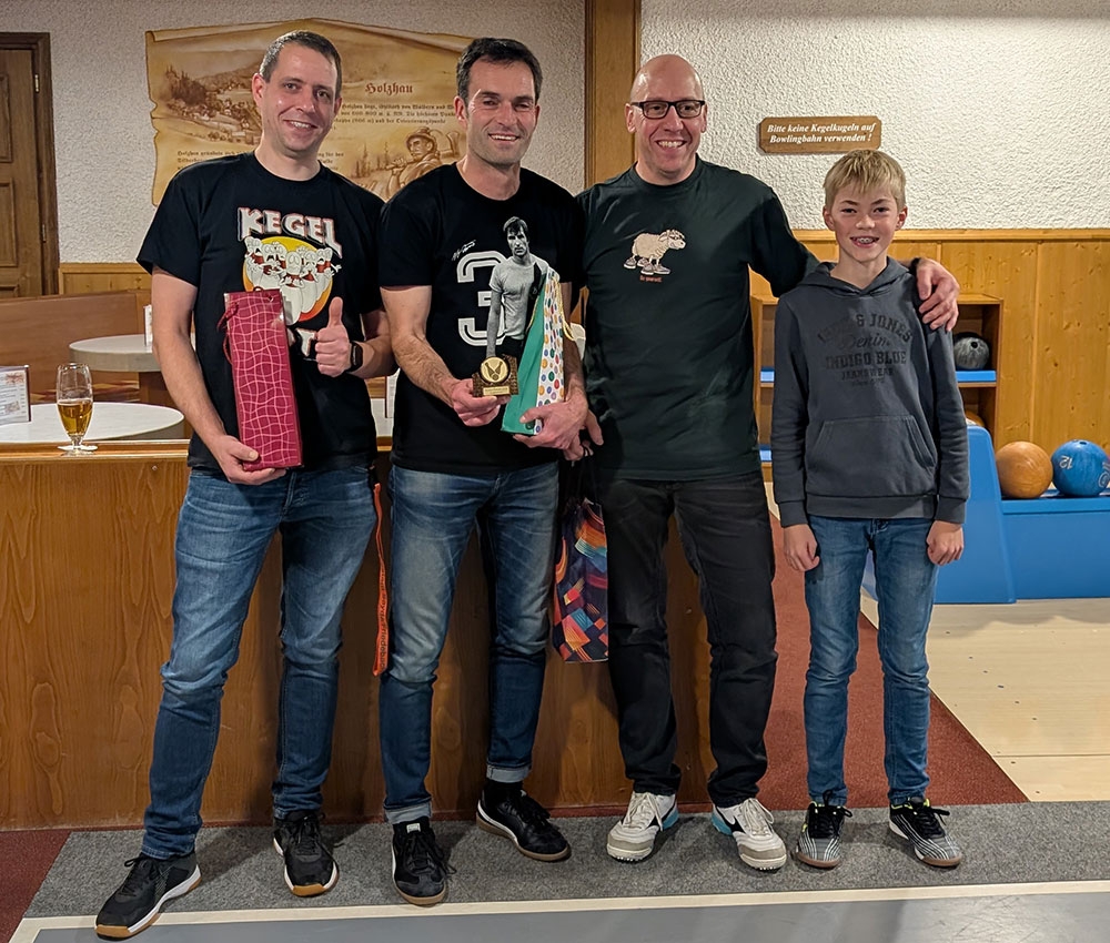 Die Pokale holten in diesem Jahr die drei Richters. Mit 139 Punkte konnte Lucas den 3. Platz und das erste Geschenk in Empfang nehmen. Sebastian „Bastl“ Richter konnte wohl sein bestes Ergebnis aller Zeiten einfahren und wurde mit 140 Punkten knapp vor Lucas Zweiter. Ihm schien die Abwesenheit seiner Frau bei diesem Event wohl beflügelt zu haben.