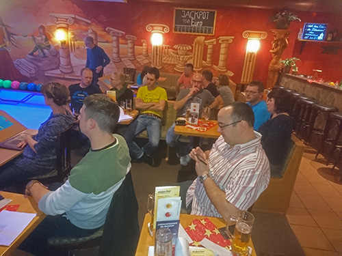 Dritter wurde Bast’l mit seiner Taktik der totalen Zerstörung aller Pins auf der Bahn.Der Rest labte sich an Speis und Trank und konnte einen gemütlichen Abend verbringen!