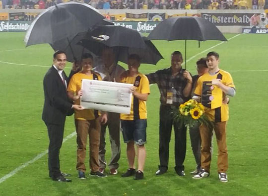 Stefan W. Er sowie 893 Personen und 16 Unternehmen schenkten ihr Vertrauen mittels einer oder mehreren Finanzspritzen. Zusätzlich wurden 82 Versteigerungen und Sammelaktionen verschiedenster Art und Weise durchgeführt, bei welchen sich tausende Personen beteiligt haben, sodass nun zum Ende ein großartiger Gesamtbetrag in Höhe von 130.000 Euro zusammengekommen ist. Diese gesammelten Gelder dienen ausschließlich zur Begleichung der Aufwendungen zur Schuldentilgung des Kölmel-Darlehens. Dieser Betrag wurde bereits am 17.08.2015 der SG Dynamo Dresden überwiesen sowie der Zahlungseingang zur Scheckübergabe zum Freundschaftsspiel gegen den FC Bayern München bestätigt.